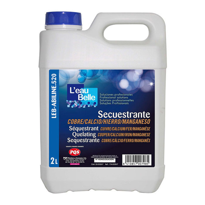 Secuestrante de cobre, calcio, hierro y manganeso. Evitará que se produzcan deposiciones e incrustaciones de estos metales en los paramentos y elementos de la piscina en contacto con el agua. Elimina las contaminaciones metálicas que aparecen en el agua de aporte y que interfieren en la acción de los desinfectantes y colorean la piscina.